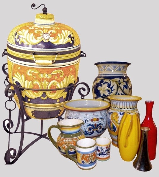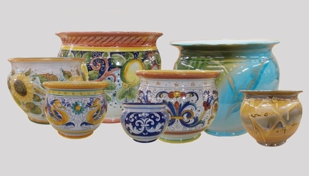 interamente decorati a mano da artisti ceramisti, ceramiche decorate, maioliche artistiche e vasi in terracotta decorata, destinati all'arredo